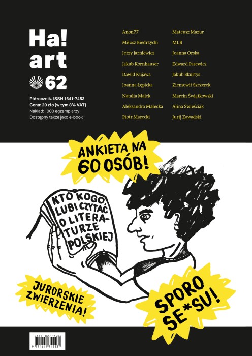Ha!art 2025, nr 62 Półrocznik pod redakcją Aleksandry Małeckiej i Piotra Mareckiego pt. "Kto kogo lubi czytać z obecnie piszących o literaturze polskiej?"